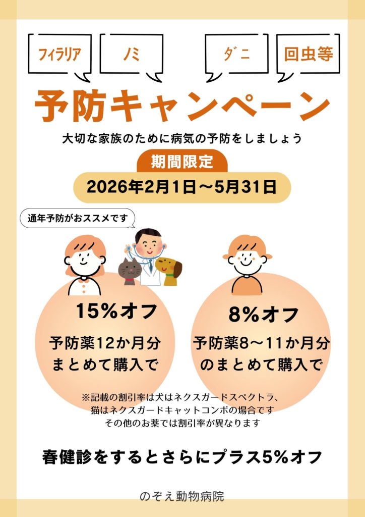 2026春のフィラリア・ノミ・マダニ等予防キャンペーン